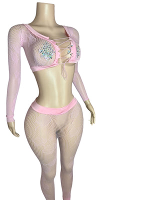 Experience perfect fashion versatility with our Sheer Set, featuring a matching two-piece outfit available in one size that fits all. Choose from a variety of colors including baby pink, black royal blue, and aqua blue.